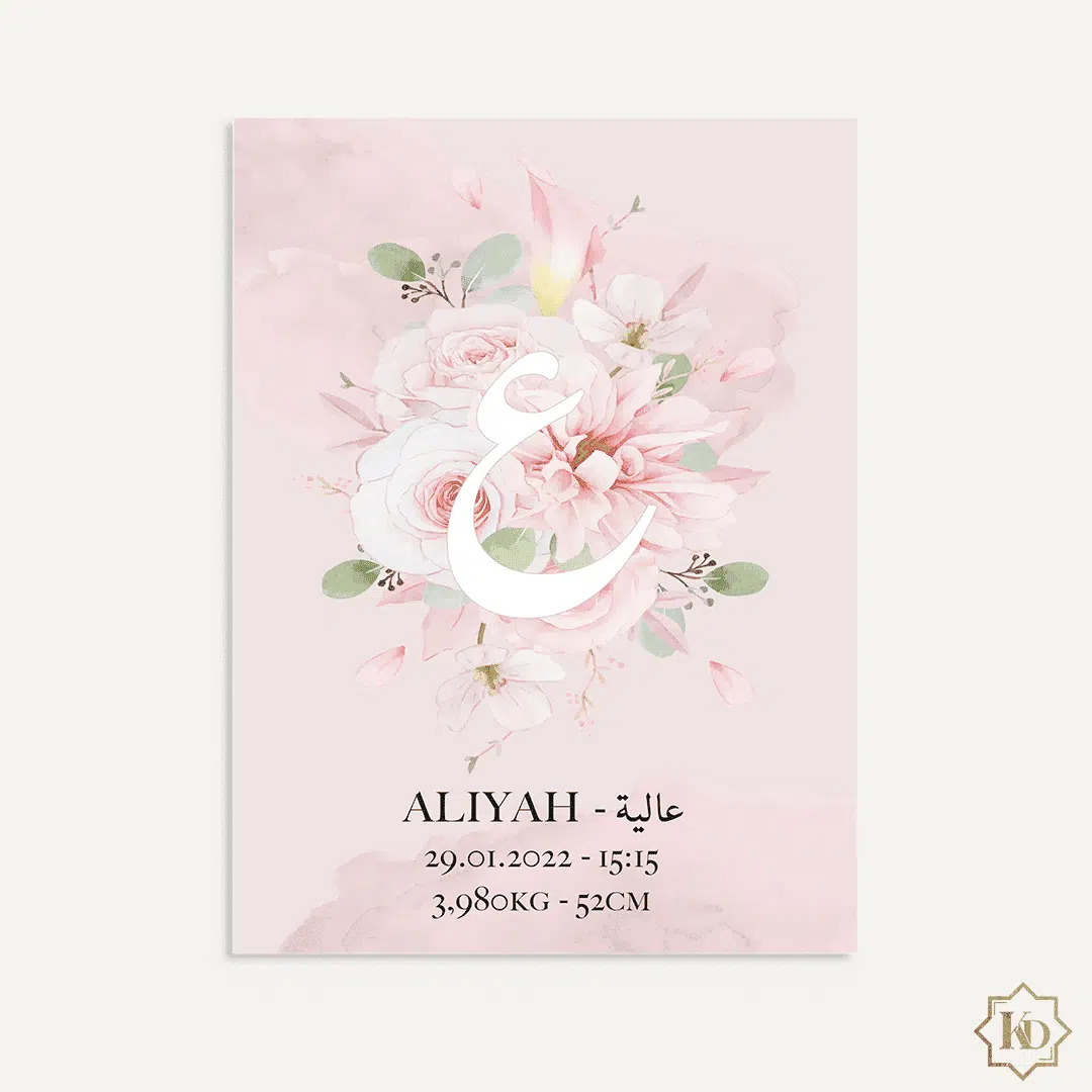 Choix des options Ce produit a plusieurs variations. Les options peuvent être choisies sur la page du produit Vue d'ensembleÀ p. de : 6,99€Le modèle Initiale Arabe Rose Pâle est un produit décoratif pour une chambre ou une salle de jeux. Il reprend un prénom manuscrit en français et en arabe, l’initiale en arabe, un bouquet fleuri et les informations de naissance. Disponible sur plusieurs supports d’impression : poster, poster (support bois) et toile.