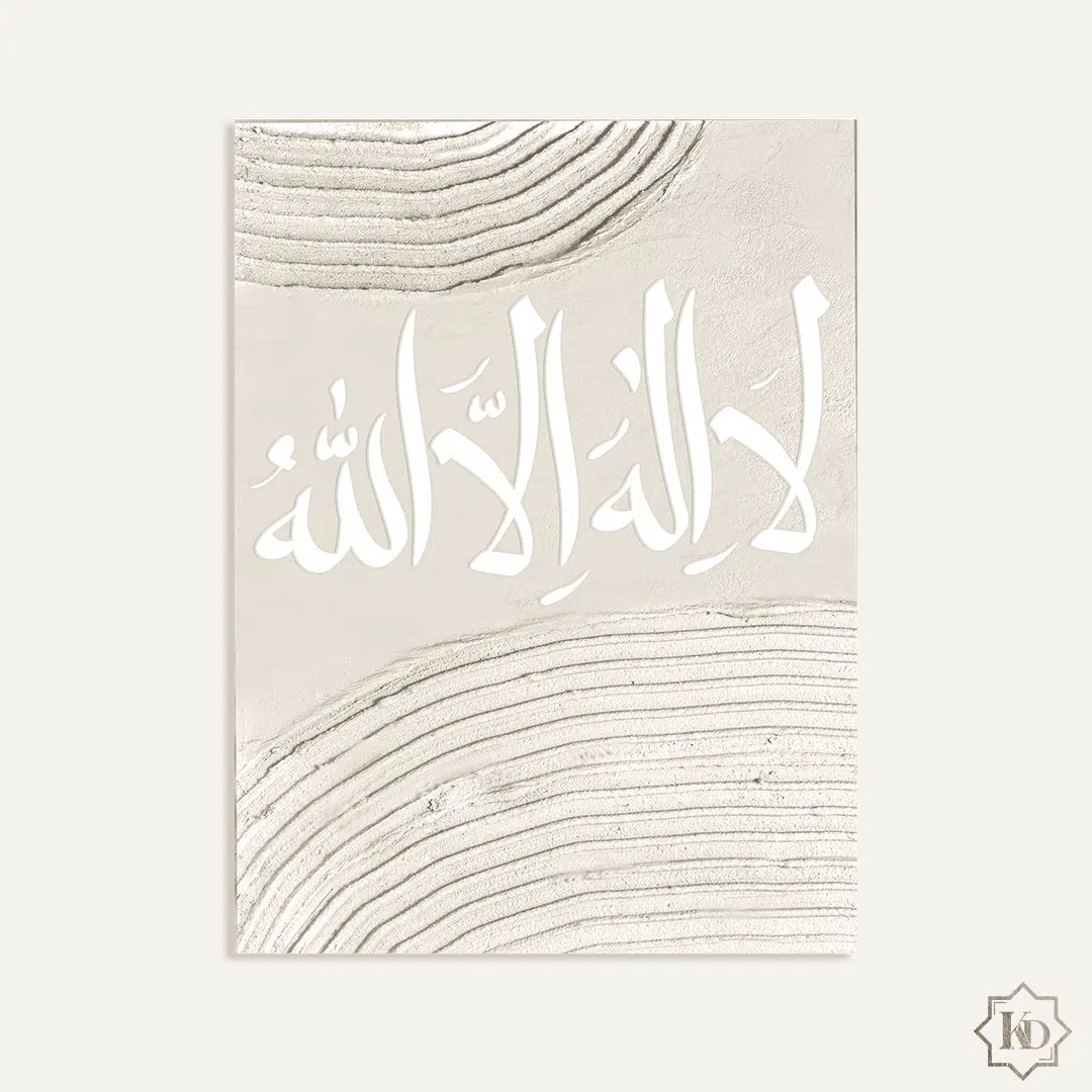 Le modèle Shahada Beige est un produit de décoration islamique reprenant l’attestation de foi (Shahada) sur un fond beige. Disponible sur plusieurs supports d’impression : poster, poster (support bois) ou toile.