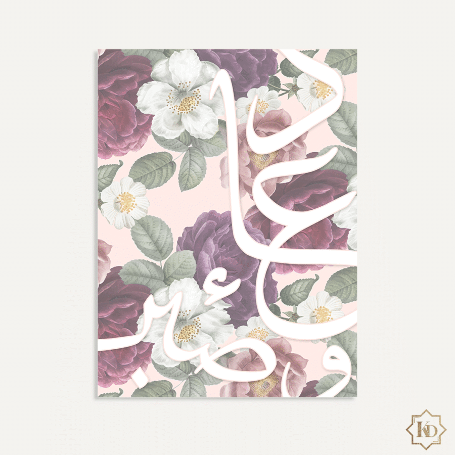 Le modèle Dou3a & Sabr Fleurs est un produit de décoration islamique pour la maison. Il reprend la calligraphie des mots Dou3a (Invocations) et Sabr (Patience) sur fond fleuri. Disponible sur plusieurs supports d’impression : poster ou toile.