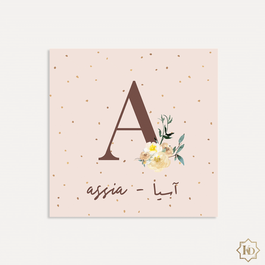 Le modèle Initiale Pois est un produit de décoration pour les enfants. Il reprend une initiale avec un décor fleuri et un prénom (fr/ar). Disponible sur plusieurs supports d’impression : poster, poster (bois) ou toile.