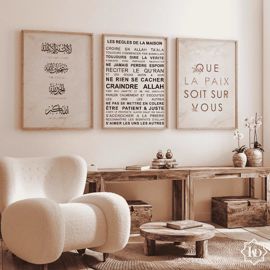 - 35 % de remiseChoix des options Ce produit a plusieurs variations. Les options peuvent être choisies sur la page du produit Vue d'ensembleÀ p. de : 24,99€Le modèle Trio Marbre est un lot de 3 posters (sans cadres) contenant les modèles : Les règles de la maison islam, Louanges Marbre et Salam Alaykoum Marbre.